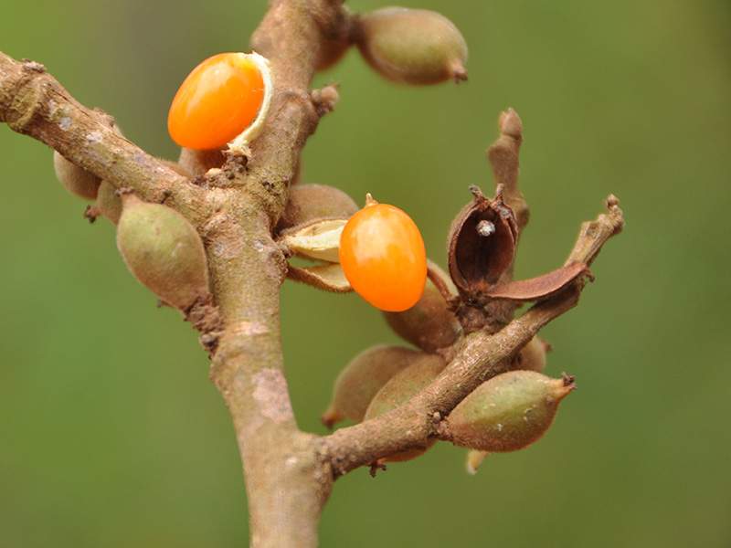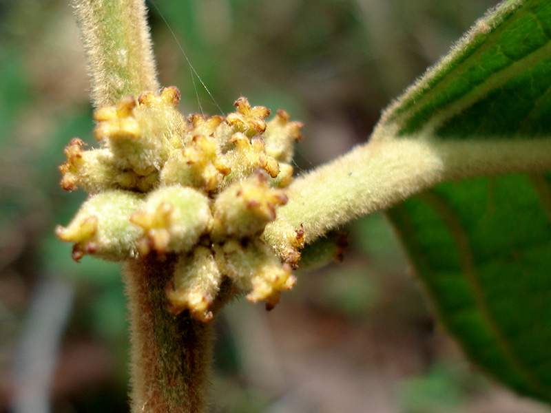 ไม้ต้น เปลือกเป็นร่องลึกตามยาว แยกเพศต่างต้น แผ่นใบค่อนข้างหนา ด้านล่างมีขนสีน้ำตาลหนาแน่น ขอบใบมีต่อม ช่อดอกแบบช่อกระจุกแยกแขนงสั้น ๆ คล้ายช่อเชิงลด ออกตามซอกใบและกิ่ง ไม่มีกลีบดอก ดอกเพศผู้ออกเป็นกระจุก 2–6 ดอก กลีบเลี้ยงรูปถ้วย มี 3–6 แฉก มีขน เกสรเพศผู้ 2–3 อัน ดอกเพศเมียออกป็นกระจุก 1–4 ดอก กลีบเลี้ยง 4 กลีบ ช่อสั้น รังไข่มีขนหนาแน่น ผลแยกแล้วแตก รูปไข่ ปลายเป็นติ่งแหลม เมล็ดมีเยื่อหุ้ม