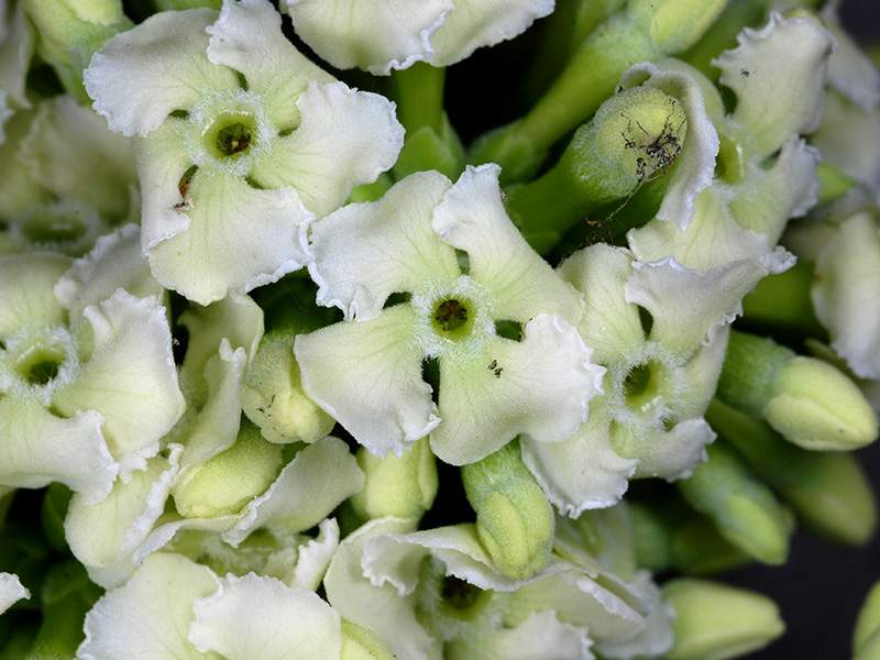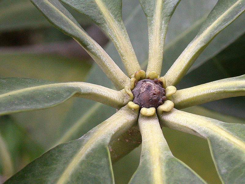 ไม้ต้น กิ่งมีช่องอากาศ หูใบคล้ายเป็นติ่งที่ซอกก้านใบ ใบเรียงเป็นวง 4–10 ใบ โคนใบมักเป็นครีบ เส้นใบตรงจำนวนมาก ช่อดอกแน่นเป็นกระจุก ก้านดอกสั้น กลีบเลี้ยง 5 กลีบ ขนาดเล็ก ดอกรูปดอกเข็ม สีขาว มี 5 กลีบ เรียงซ้อนทับด้านซ้ายหรือด้านขวาในตาดอก หลอดกลีบสั้น ปากหลอดมีขนสั้นนุ่ม เกสรเพศผู้ติดเหนือกึ่งกลางหลอดกลีบ จานฐานดอกเป็นต่อมแยกกัน ผลออกเป็นฝักคู่ รูปแถบ ยาว 20–55 ซม. เมล็ดขอบมีขนครุย